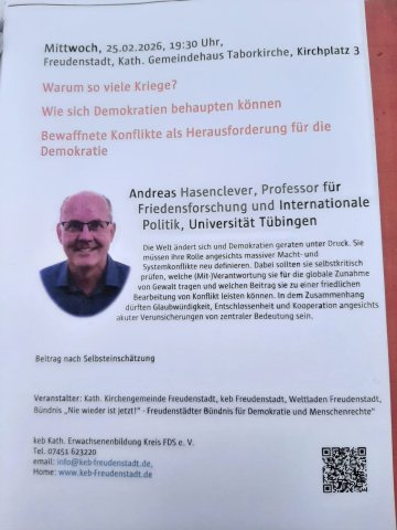 Wir waren zusammen mit anderen demokratischen Parteien mit einem Infostand auf dem Wochenmarkt in Freudenstadt. Anlaß war die Landtagswahl in Baden-Württemberg am 8. März 2026. Wir haben ein paar Bilder gemacht, die angeschaut werden können.